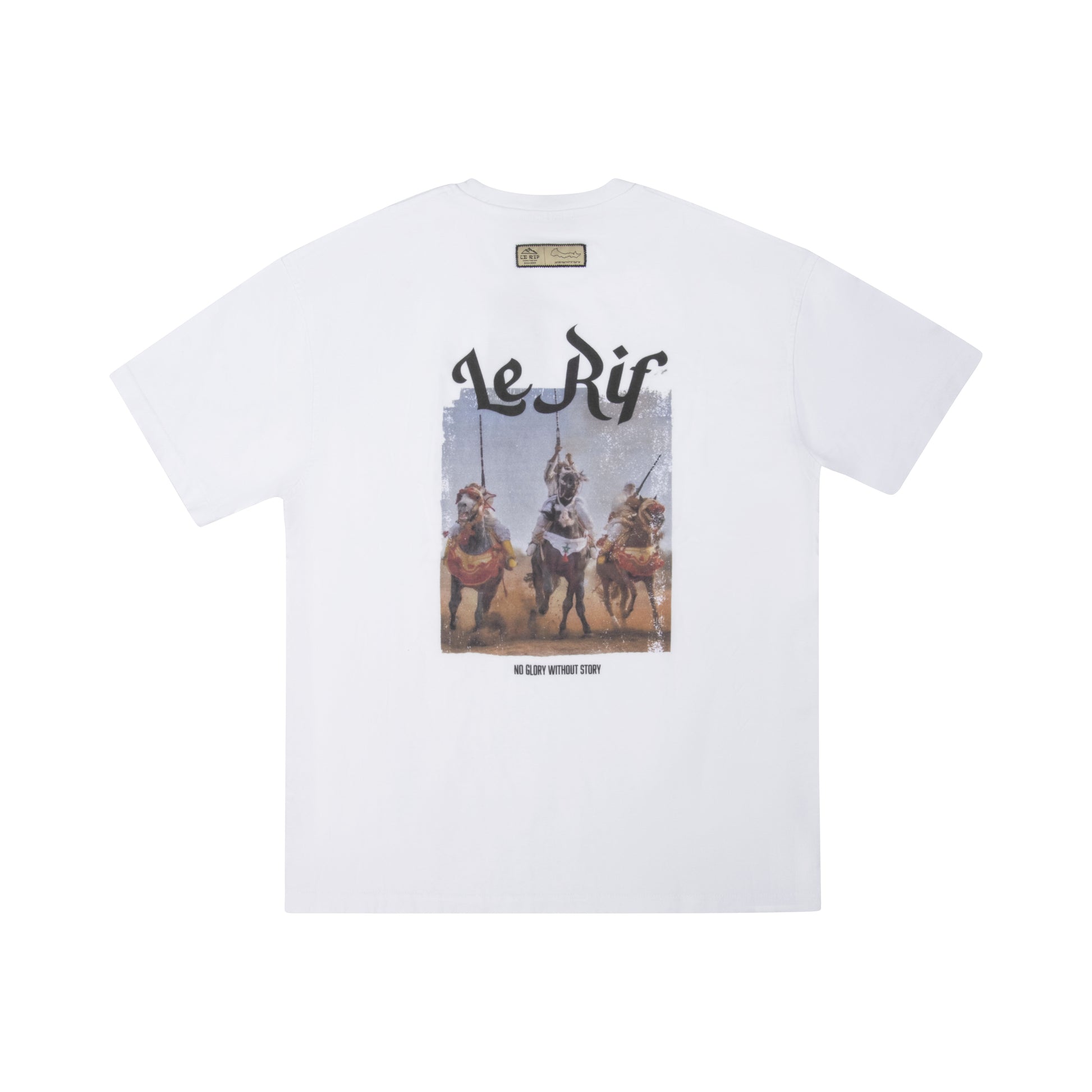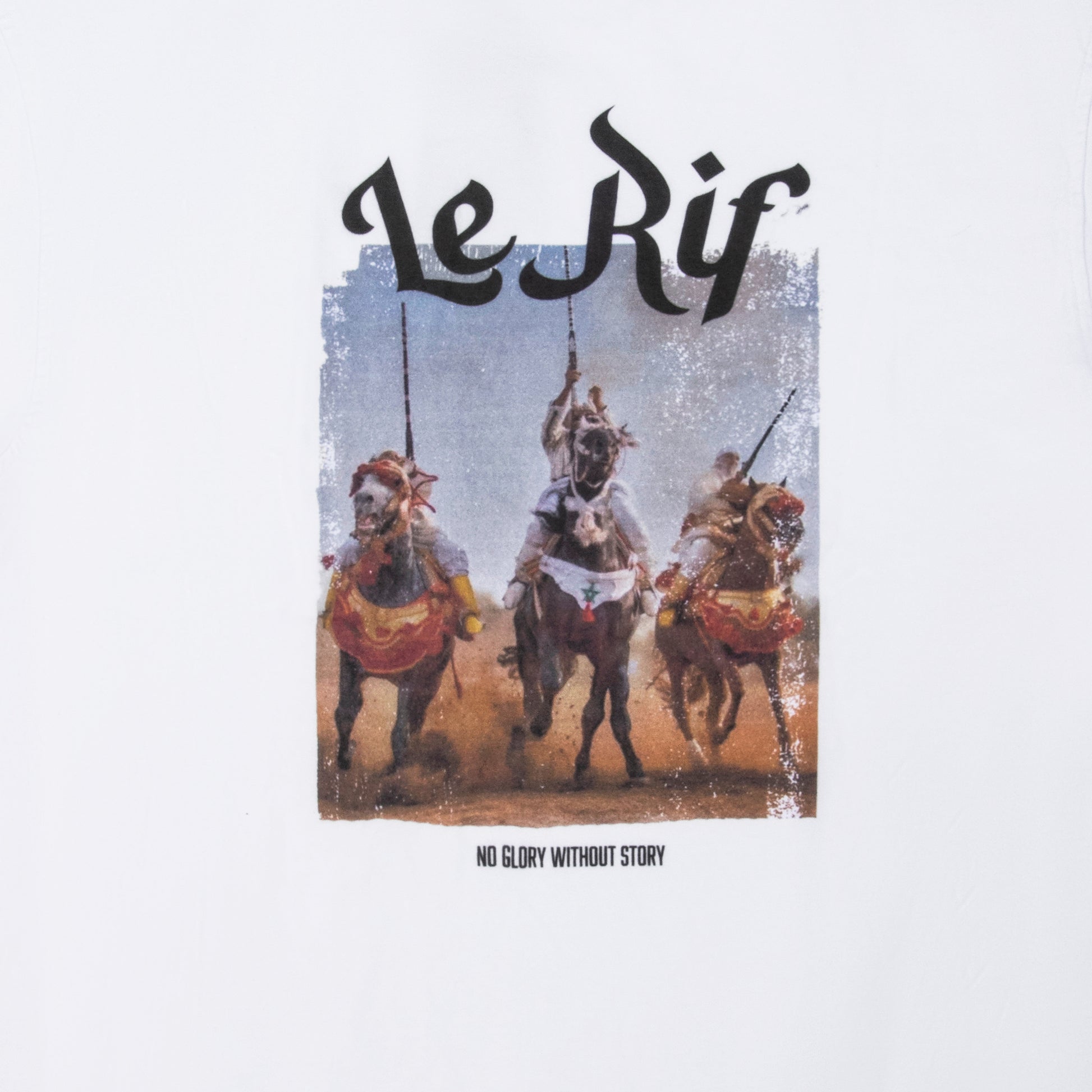 The Le Rif Dust and Honor T-Shirt captures the essence of courage, heritage, and pride. Featuring a striking design of traditional horsemen charging through a cloud of dust, this piece symbolizes resilience and the enduring spirit of tradition. The powerful slogan "No Glory Without Story" highlights the importance of legacy and the tales that shape us.